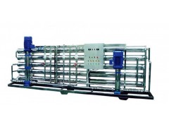 反渗透水处理设备是膜法水处理设备的一种,是当前制备纯水及高纯水时应用最广的一种设备。在膜设备当中,反渗透膜可去除离子级杂质,使出水达到纯水及高纯水的标准。反渗透膜的膜孔径非常小(仅为10A左右),因此能够有效地去除水中的溶解盐类、胶体、微生物、有机物等(去除率高达97-98%)。系统具有水质好、耗能低、无污染、工艺简单、操作简便等优点。