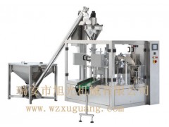 本机型主要由预制袋式包装机、螺杆计量机、螺杆物料送料机。转专用吸尘器配料而成。采用智能数控系统触摸屏人机界面,整机全不锈钢制作,保证食品卫生与安全标准,要求抗腐蚀化工产品等的包装。适用于医药、食品、化工、面粉、米粉、配料粉等粉状物料,自动完成送料、自动取袋、打码、开袋、计量、充填制袋、热封、成品输出的全部过程。操作简单、制袋精准、性能稳定可靠。