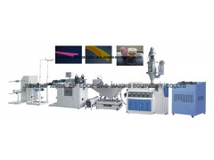 该机是我公司自行设计、自行制造的夹链挤出机、更换了模具可制作各种形状的夹链,该机由主挤出机、模具定型、冷却水恒温定型、脱水装置、风干装置、夹链合口装置、自动摆动收卷等组成,模具结构变动灵活、装卸方便等优点。