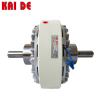 磁粉离合器又称电磁粉离合器、磁粉式离合器(型号有: PC-0.3、PC-0.6、PC-1.5、PC-2.5、PC-10、PC-20、PC-40),是根据电磁原理和利用磁粉传递转矩的,具有激磁电流和传递转矩基本成线性关系,在同滑差无关的情况下能够传递一定的转矩,具有响应速度快、结构简单、无污染、无噪音、无冲击振动节约能源等优点,是一种多用途、性能优越的自动控制元件。按轴型分类有:双轴磁粉离合器、中空轴磁粉离合器、空心轴磁粉离合器,按冷却方式分类有:自冷式、风冷式和水冷式等等。